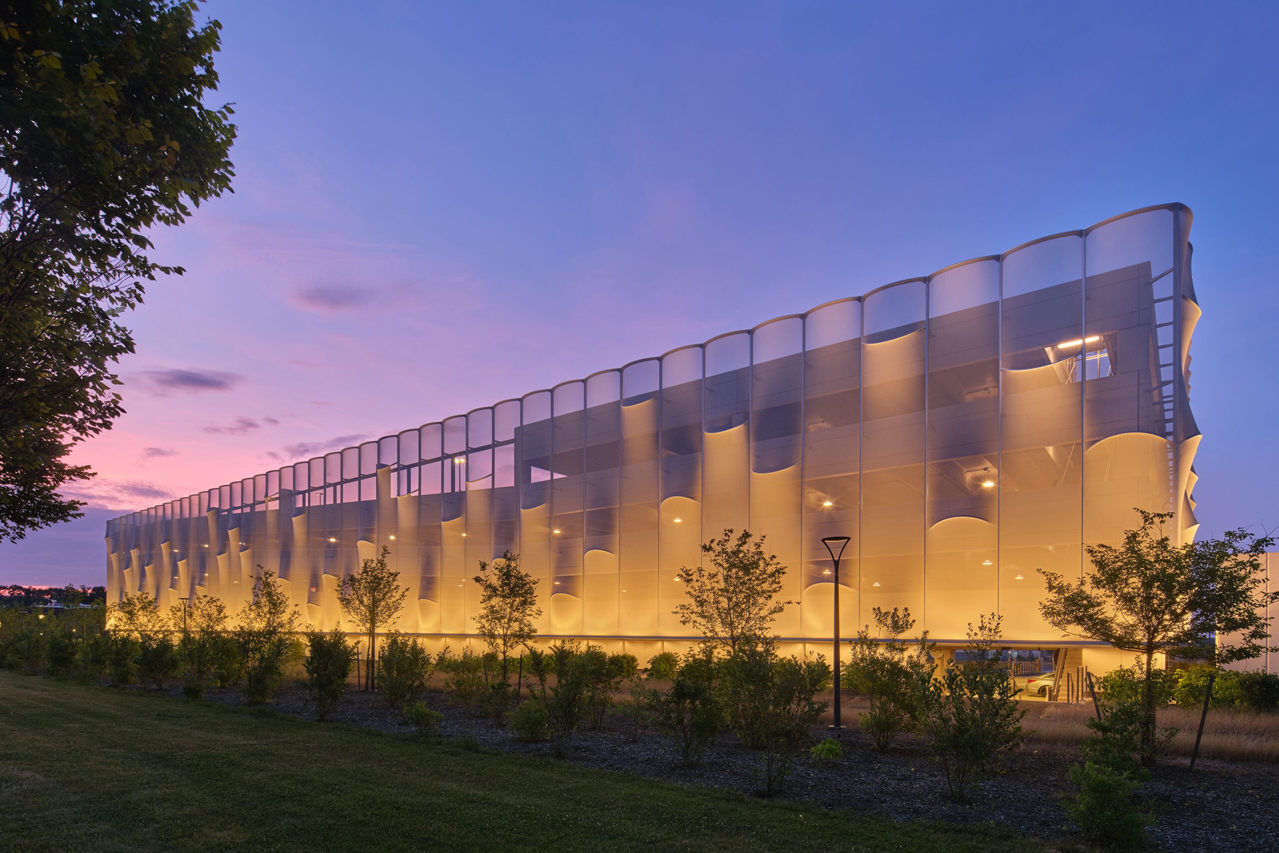 As part of the University’s Net-Zero program, the garage’s undulating, mesh-façade is lit by concealed uplights, creating a reversal of daytime lights and shadows. The glowing stair-tower and uplit canopy enhance the garage’s visual appeal while minimizing light pollution, while interior integrated lines of light serve as cues for public circulation. Jury comment: They achieved sustainability through intelligent lighting design closely integrated into architecture and materiality of the project.